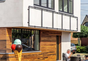 Combinatie van geïsoleerde en niet-geïsoleerde betonelementen in gladde wolkarme afwerking.